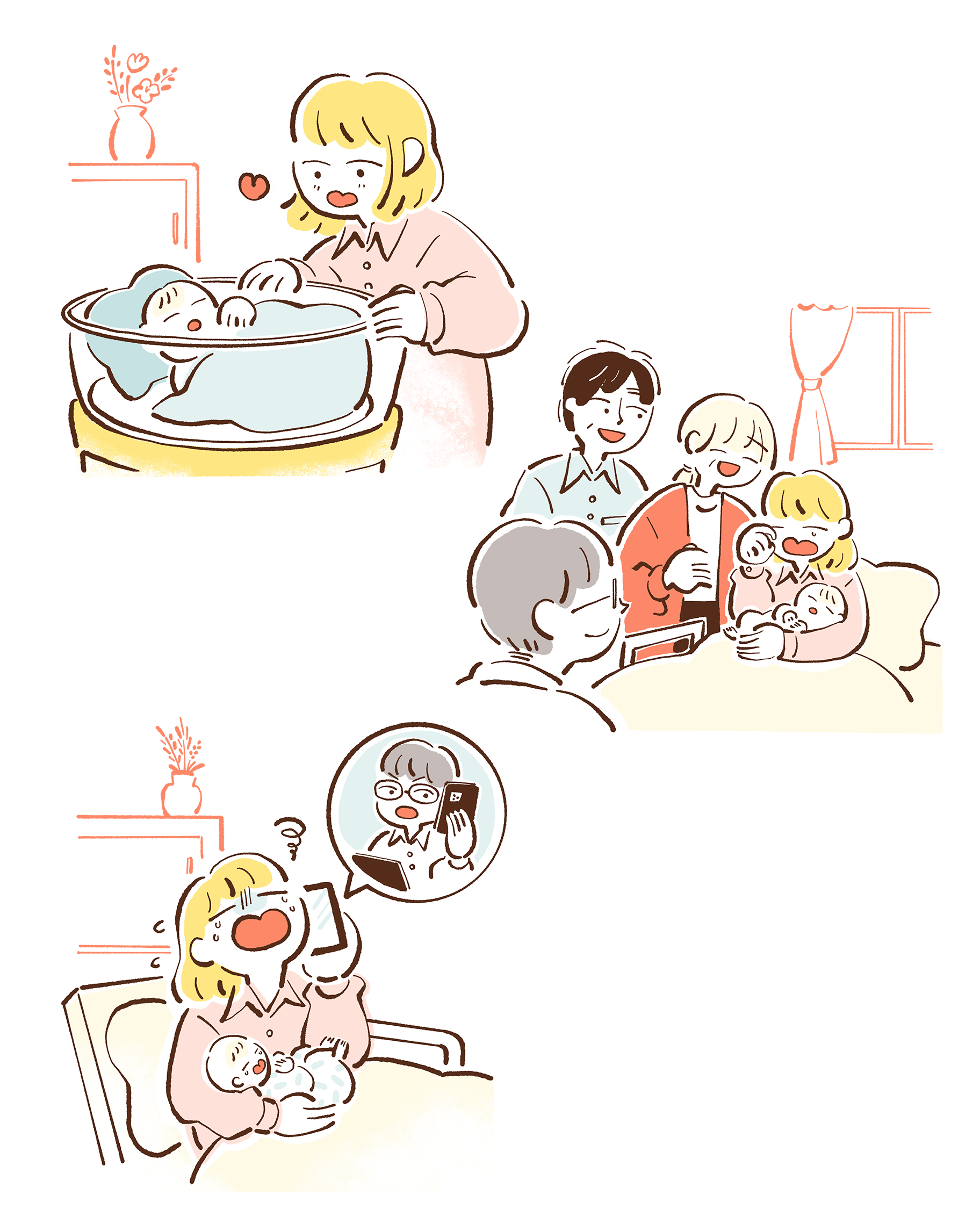 妊娠・出産・育児情報メディア「Hello baby」の「お産入院Diary」特集の挿絵を担当しました。